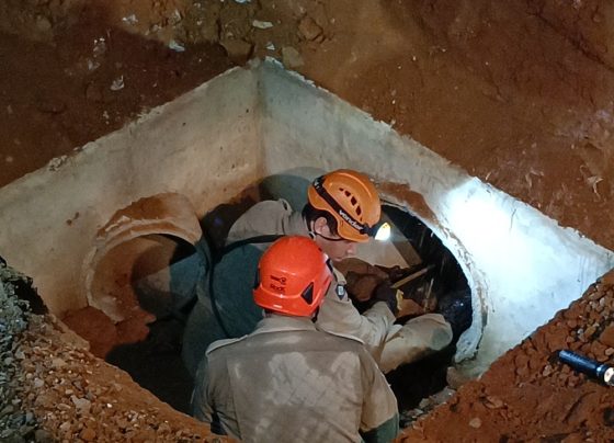 Bombeiros resgatam idosa que estava desaparecida após cair em bueiro