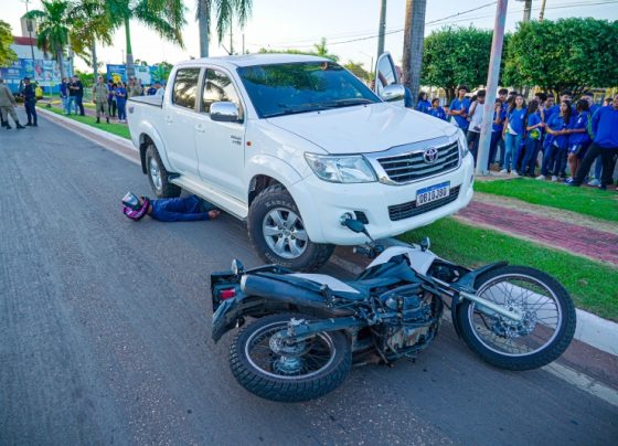 Simulação de acidente de trânsito marca ações do “Maio Amarelo” em Lucas do Rio Verde