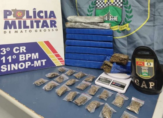 PM apreende nove tabletes e 20 porções de maconha em zona rural de Sinop