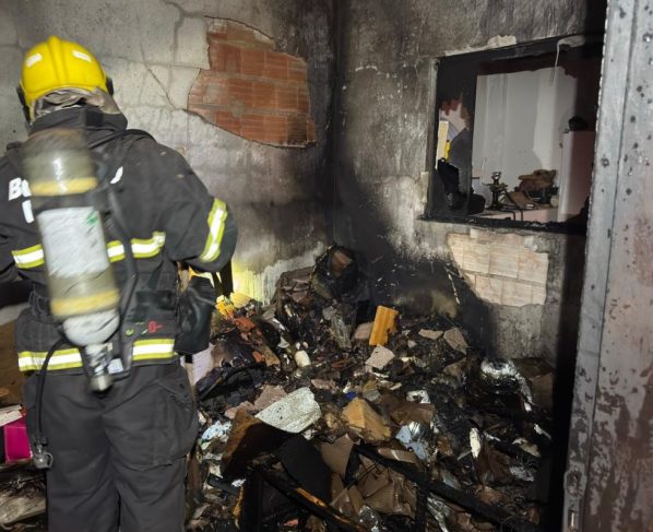O incêndio destruiu móveis e objetos do quarto, como cama, colchão e roupas, além de atingir parte do forro de PVC da residência.