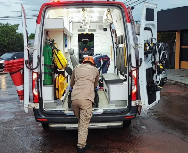 O Corpo de Bombeiros foi acionado e encontrou a vítima caída no asfalto, consciente e orientada. Durante o atendimento inicial, os socorristas identificaram suspeita de luxação na clavícula esquerda e possível fratura no fêmur esquerdo. Ela também apresentava escoriações na mão esquerda.