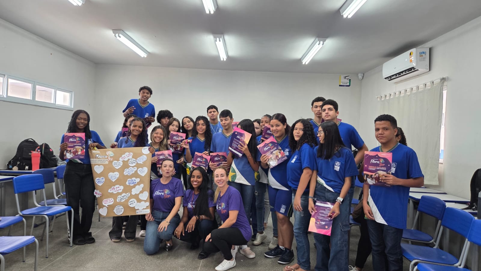 Agenda de março – Uma das frentes de atuação é desenvolvida por meio do projeto FloreSer, realizado em escolas públicas e privadas. Nesta sexta-feira, a equipe do Espaço Caliandra cumpriu mais uma etapa das rodas de conversa na Escola Welson Souza de Mesquita, com cerca de 55 alunos do 1º ano do ensino médio, com idades entre 14 e 17 anos.