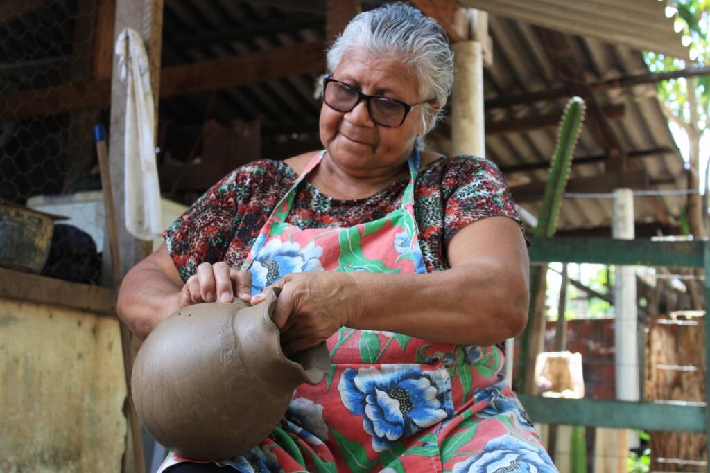 Júlia Rodrigues da Conceição é uma das fundadoras da Associação dos Artesãos de São Gonçalo Beira Rio, produz peças, já participou de exposições e ensina a arte cerâmica em cursos e aulas.